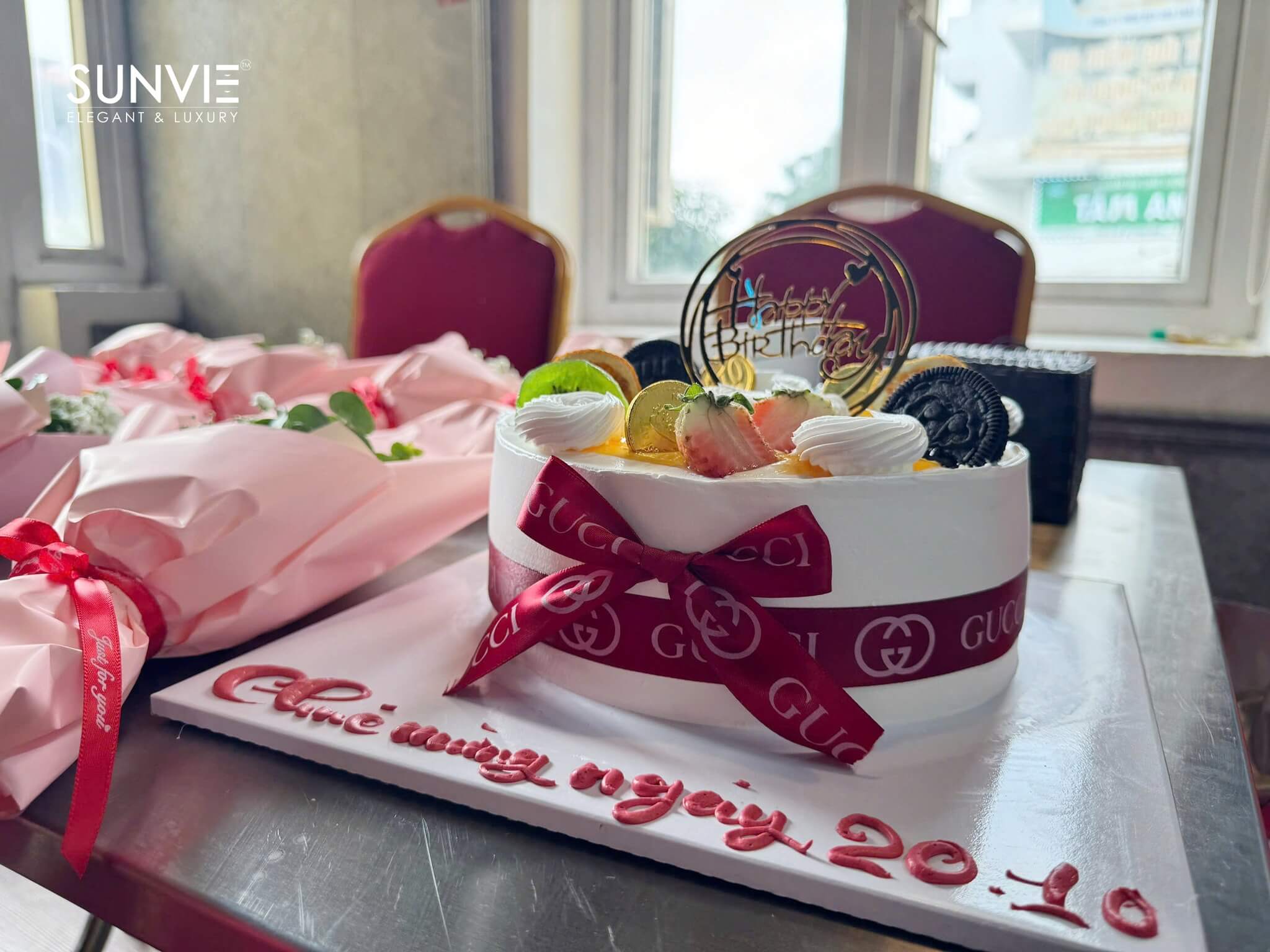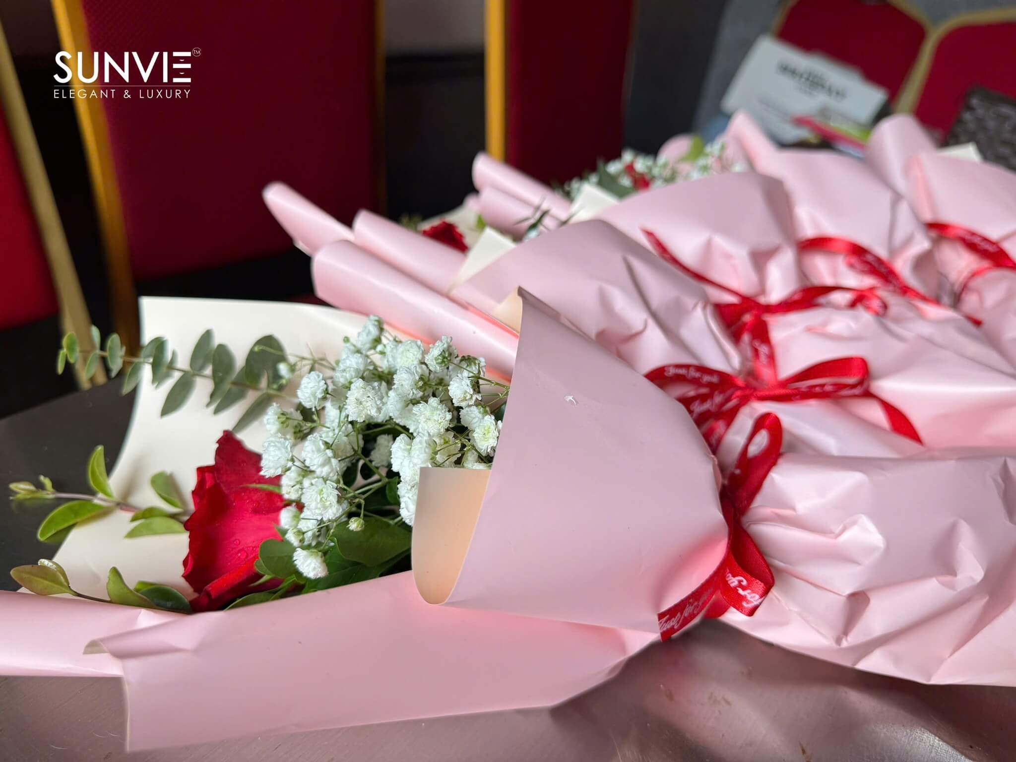 Đại diện cánh mày râu Năm Sao Việt, anh Xuân Anh, đã được mời lên sân khấu để gửi tặng những phần quà và hoa. Hành động trao quà diễn ra trong không khí trang trọng, ấm áp với những cái bắt tay thân tình và lời chúc trực tiếp, mang đậm tính nhân văn của Văn hóa doanh nghiệp.